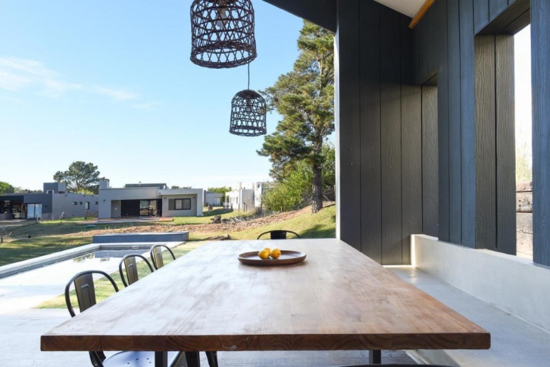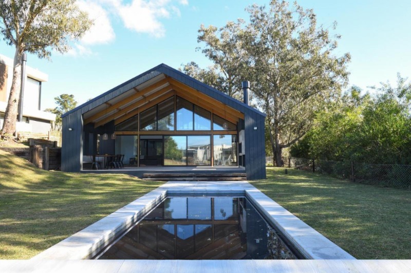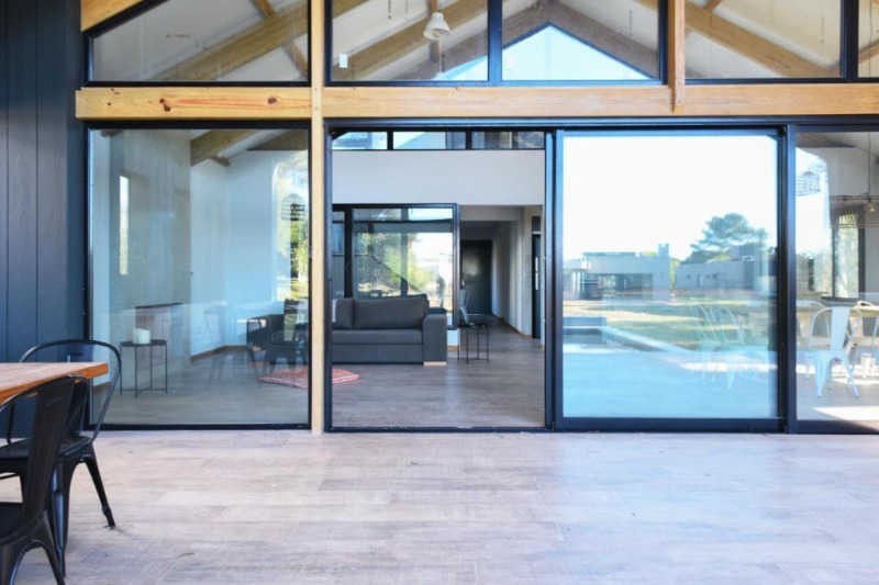• Cerramientos de aluminio Aluar A30 color negro con DVH (doble vidriado hermético), ventanas oscilobatientes y carpinterías corredizas. DVH con laminado en puertas ventana.