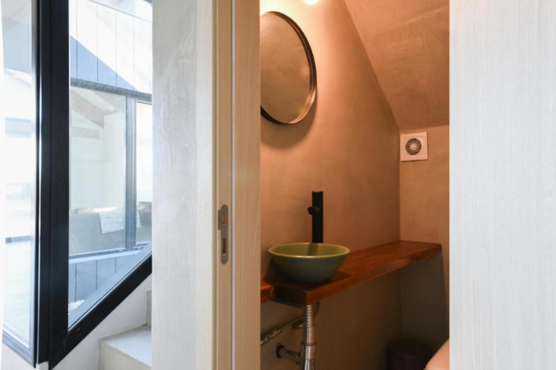 • Pisos de porcerlanato simil madera en toda la casa, escalera terminada en microcemento