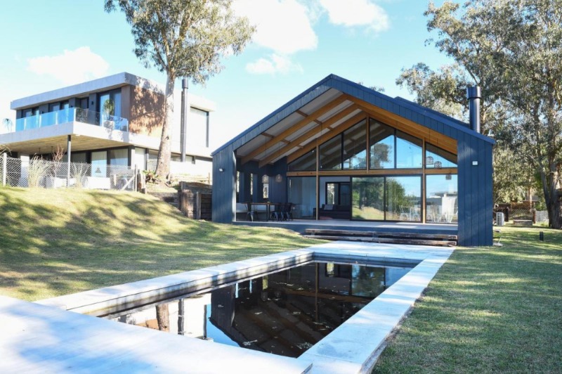• Construcción tradicional. Estructura de muros portantes ladrillo portante 18 cms. Fundada sobre bases de hormigón armado. Losa sobre planta baja de Losetas tipo cerbelú. Cubiertas con pendiente: estructura de madera miltilaminada y paneles doble cara de chapa duopanel de Aerolatina con cuerpo de espuma poliuretánica.