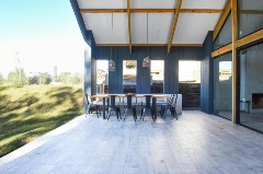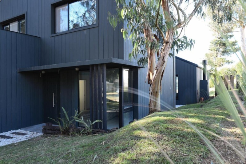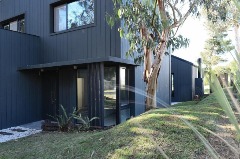 • Revestimiento exterior siding cementicio 8 mm vertical sobre bastidor pintado con Recuplast frentes.