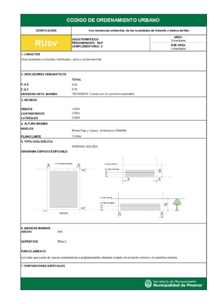 ALTURA MAXIMA NIVELES PLANO LIMITE Planta Baja y 2 pisos. (Ordenanza 2094/98) 13.00m